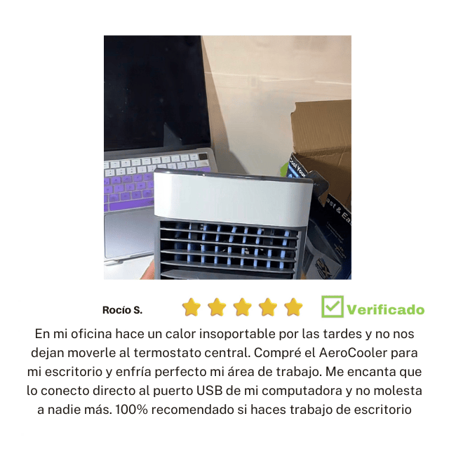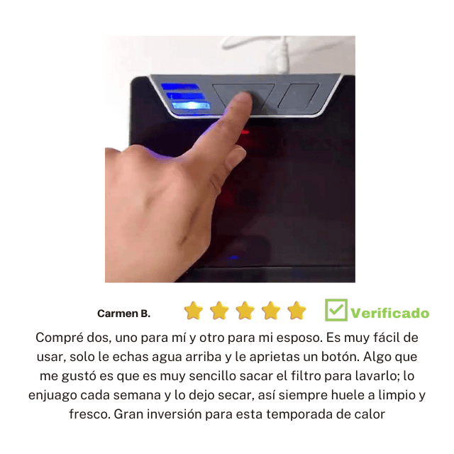Los ventiladores comunes solo empujan el aire caliente de la habitación directo a tu cara. AeroCooler utiliza tecnología avanzada de enfriamiento por evaporación.