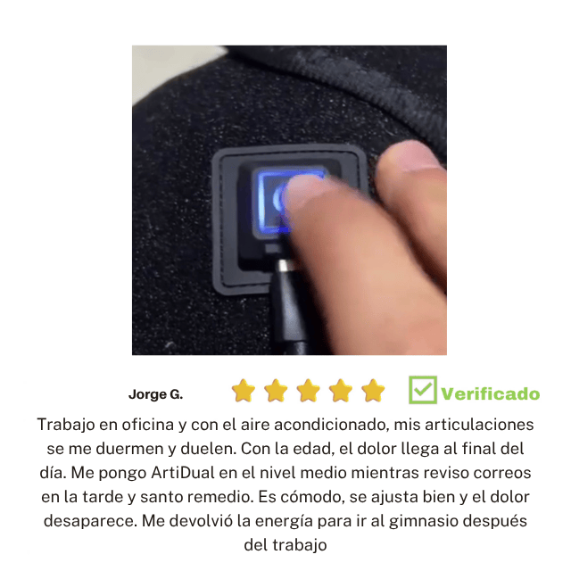 Si el dolor articular, la artritis o los calambres te detienen, necesitas una solución más allá de los antiinflamatorios. ArtiDual® usa la ciencia del calor eléctrico de 3 niveles para relajar y mejorar la circulación desde dentro. Además, incorpora la bolsa de malla para aplicar frío inmediatamente después de una lesión. Ofrece una doble acción superior a cualquier remedio superficial. ¡Es tu terapeuta personal y tecnológico!