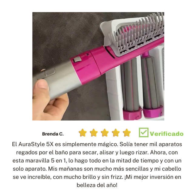 Con AuraStyle 5X®, cada día es una oportunidad para lucir un cabello impecable. Simplifica tu rutina de belleza y descubre la facilidad de cambiar de estilo con una herramienta potente, eficiente y que protege lo más importante: la salud de tu cabello.
