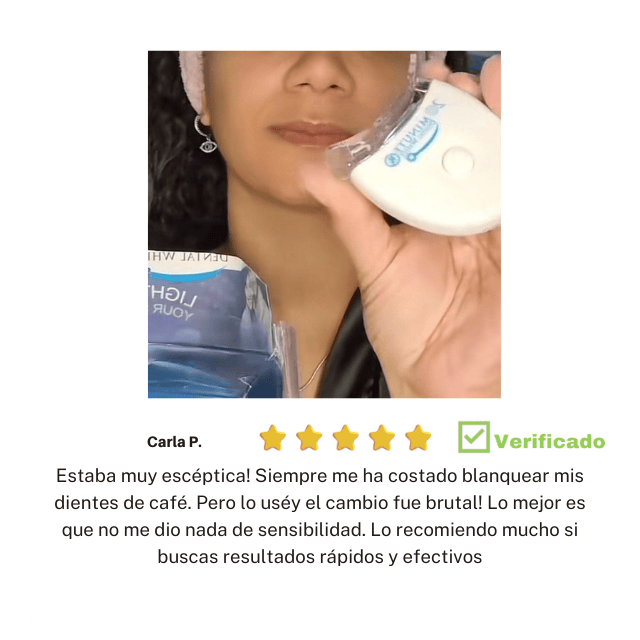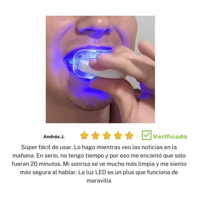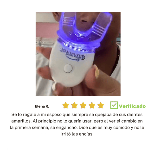 Presentamos DentiGlow20: La revolución en blanqueamiento dental que te da un brillo espectacular de forma rápida y segura. Olvídate de las largas citas y los geles ineficaces. Con nuestra tecnología LED avanzada, tendrás una sonrisa profesional ¡en solo 20 minutos!